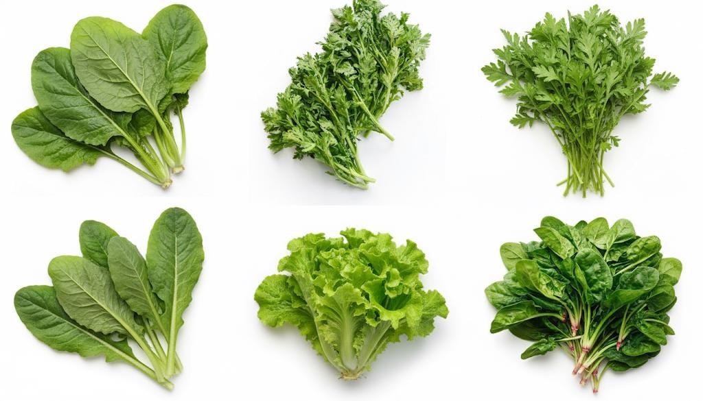 Asian AUTUMN GREENS Seeds blend Mix: Gai Choi, Shungiku, AA Choi, Tatsoi, Red Giant, Okame Spinach , Vietnamese Lettuce Great for spring planting too!!!