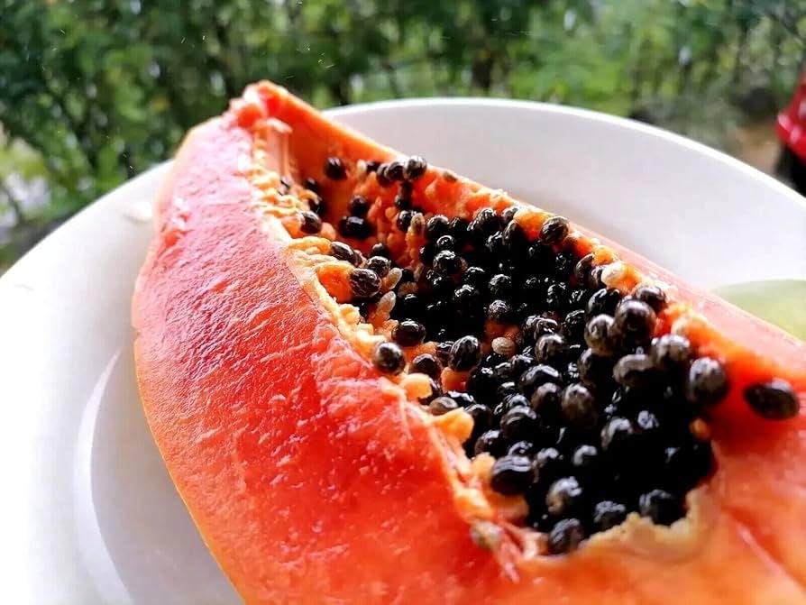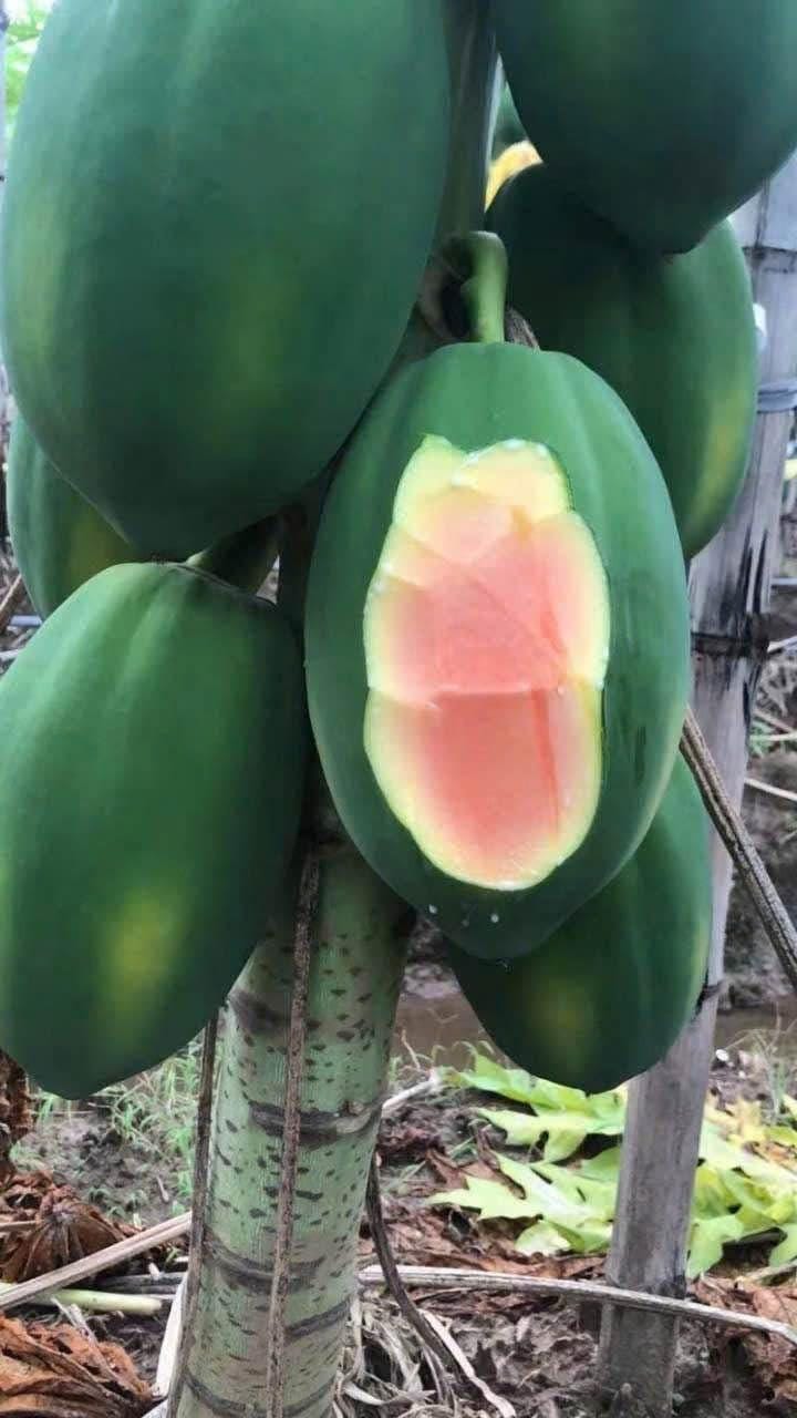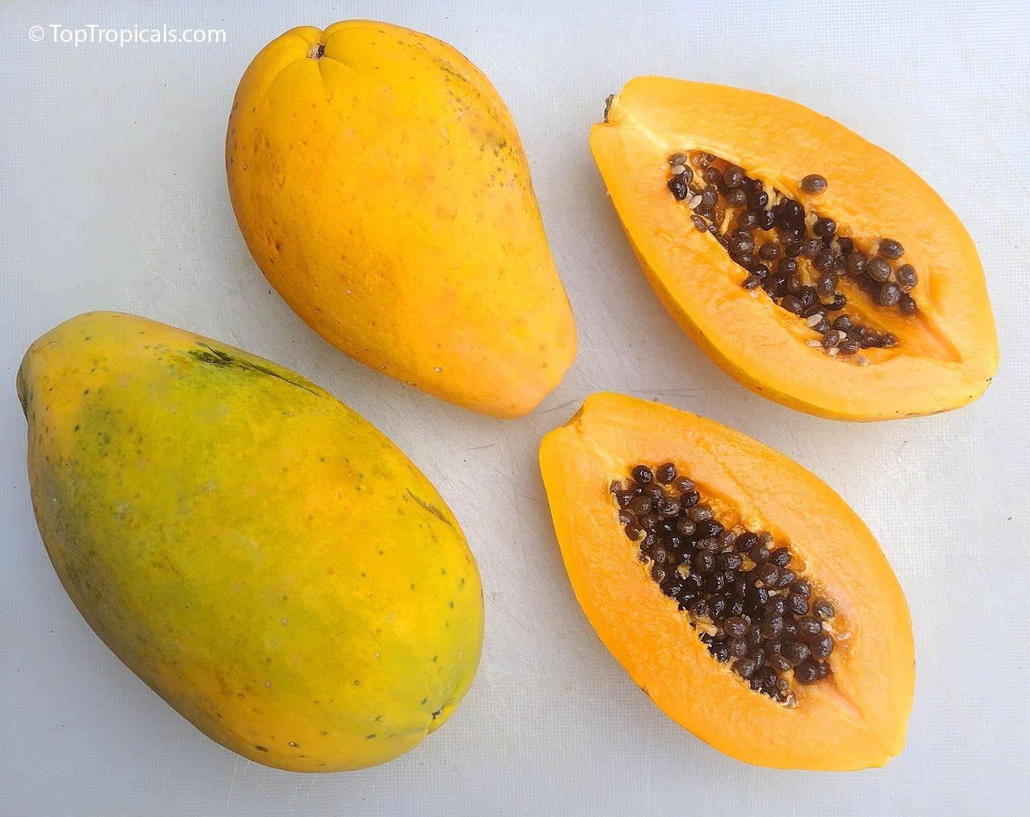 - High Yield, Extra Sweet Large Dense Fruits (2 - 3lbs each) - Self Pollinating & Non-GMO - Seeds are completely Washed & Air Dried - We selecting only mature ripe papayas & hand picking only high quality large seeds to ensure optimal germination - Fast grower, trees will fruit in about 6-8 Months, depending on soil, watering, etc.