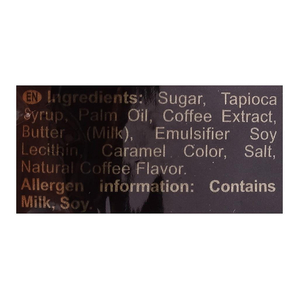 Kẹo được làm từ các thành phần chất lượng như đường, siro tinh bột, dầu cọ, chiết xuất cà phê, bơ sữa, lecithin đậu nành, màu caramel, muối và hương cà phê tự nhiên, mang đến trải nghiệm cà phê chân thực trong từng viên kẹo nhỏ gọn. Dạng kẹo cứng giúp giữ vị lâu hơn, đáp ứng cơn thèm cà phê mà không cần pha chế.