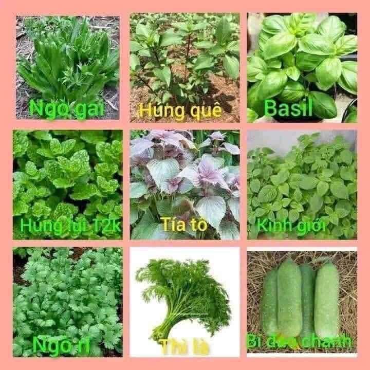 Gói hạt hơn 10.000 hạt rau, thảo mộc và bầu mướp phổ biến trong ẩm thực Việt. Bao gồm: ngò gai, húng quế Thái, húng quế Việt, tía tô, kinh giới, ngò, thì là và bí đao (bầu mướp). Phù hợp trồng luống, chậu, ban công — cung cấp lá tươi cho món canh, gỏi, phở và xào.