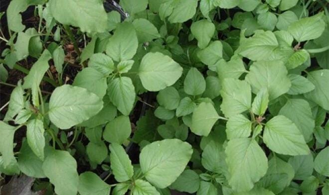 Green amaranth (green spinach or rau dền xanh) produces tender, spoon-shaped dark green leaves and striking magenta flower spikes. Leaves are tasty raw or cooked like spinach; mature seedheads yield a gluten-free pseudo-grain used like quinoa. Fast-growing and heat-tolerant, suitable for containers or garden beds, with attractive edible foliage and versatile culinary uses.